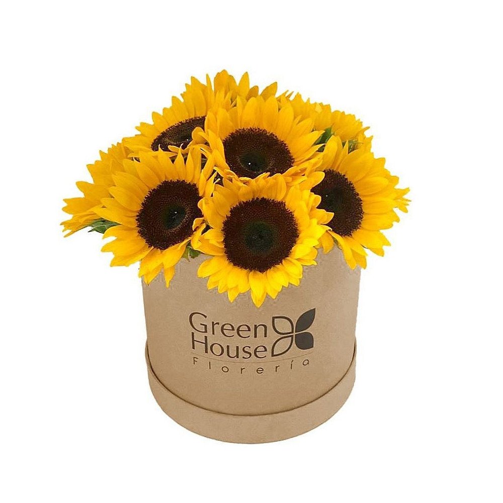 12 girasoles en exclusivo box color natural. 30 cm alto.