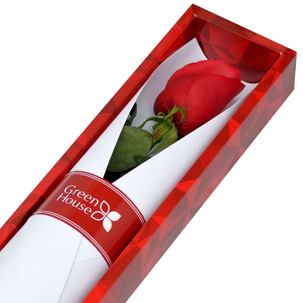 1 rosa en exclusiva caja Colección Rubí con tapa de mica transparente. 60 cm. Largo. Color de la rosa según su elección.