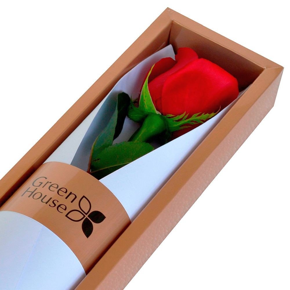 1 rosa en exclusiva caja Glam Gold con tapa de mica transparente. 60 cm. Largo. Color de la rosa según su elección.
