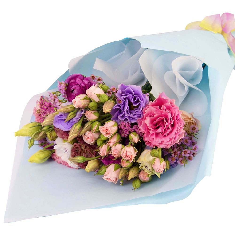 Delicado ramo de rosas bebé y flores variadas en papel decorativo especial.