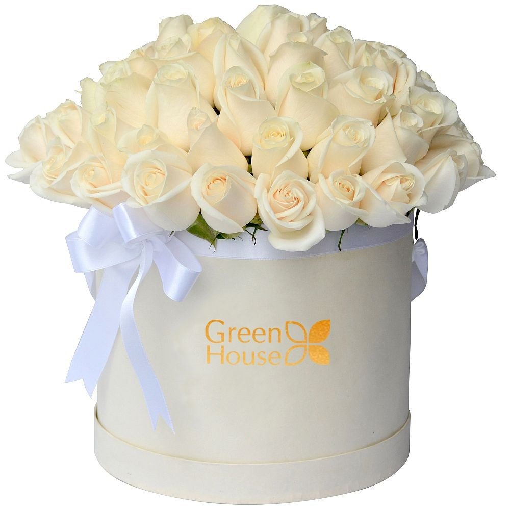 Luxury Box con 36 rosas blancas, decorada con lazo.
