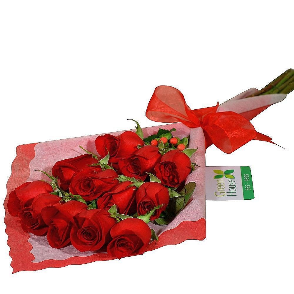12 rosas en exclusivo ramo. Color de las rosas según elección.
