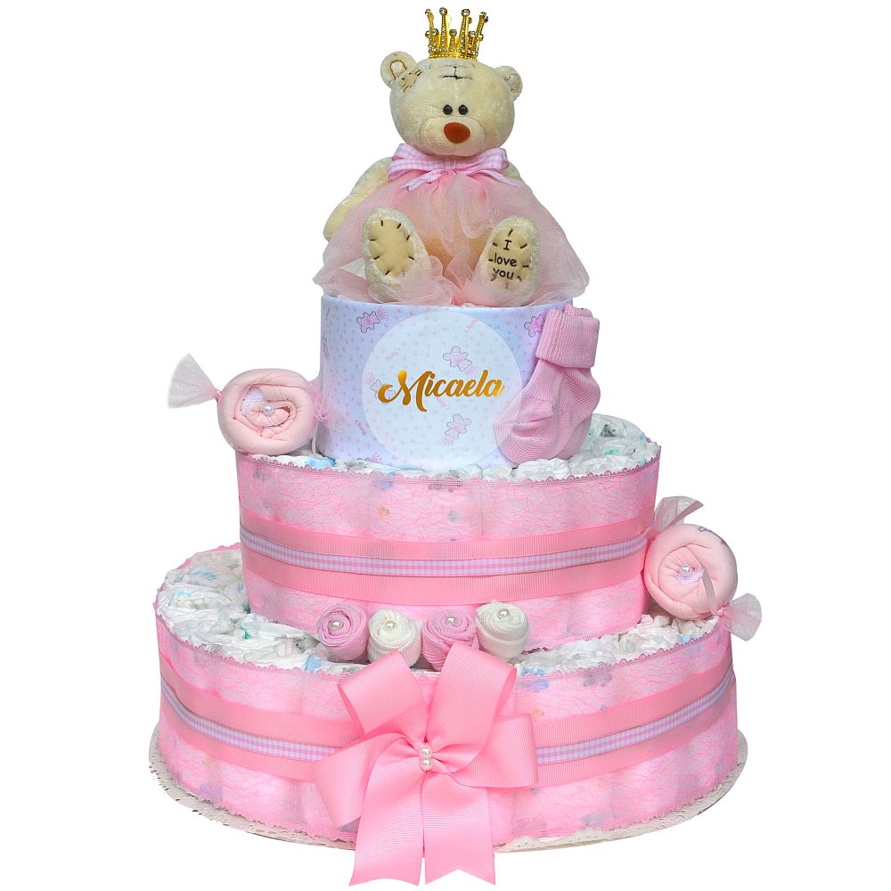 TORTA PAÑALES NIÑA (PERSONALIZABLE)
